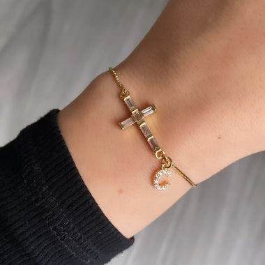 Cross Baguette w/ initial Bracelet